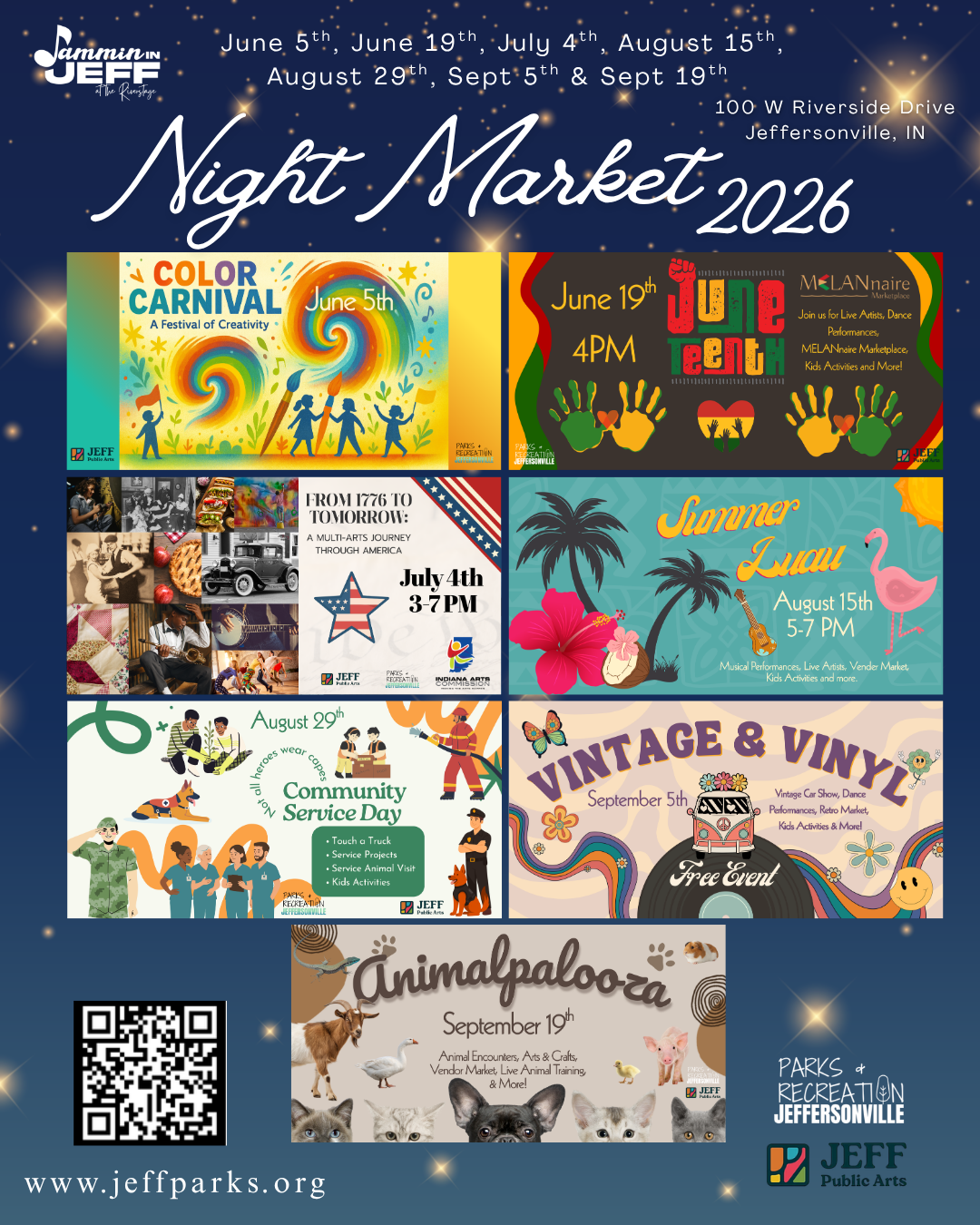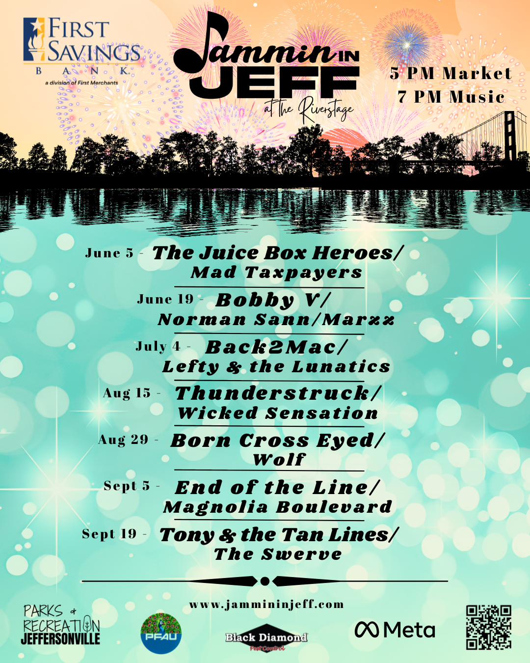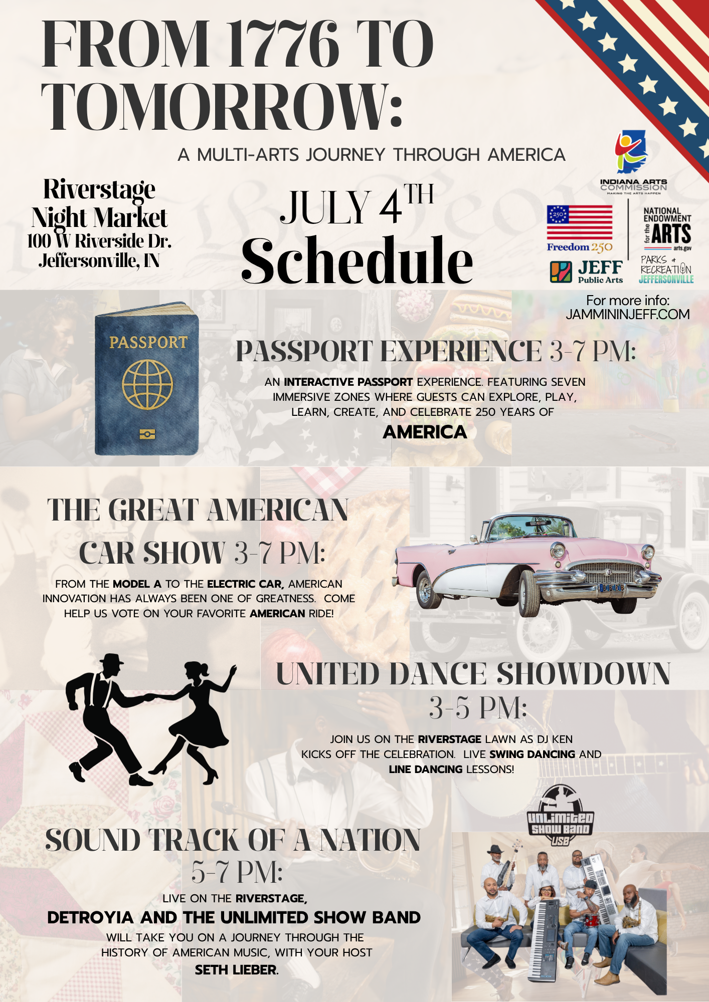 RiverStage is managed by the The Parks & Recreation Department of Jeffersonville, who also acts as producer for the summer calendar. Operating under supervision of the City Council, Parks & Recreation develops events and works with other producers and playwrights to arrive at a season of continuous and varied entertainment. For information regarding downtown Jeffersonville restaurants and FREE public parking visit www.jeffmainstreet.org